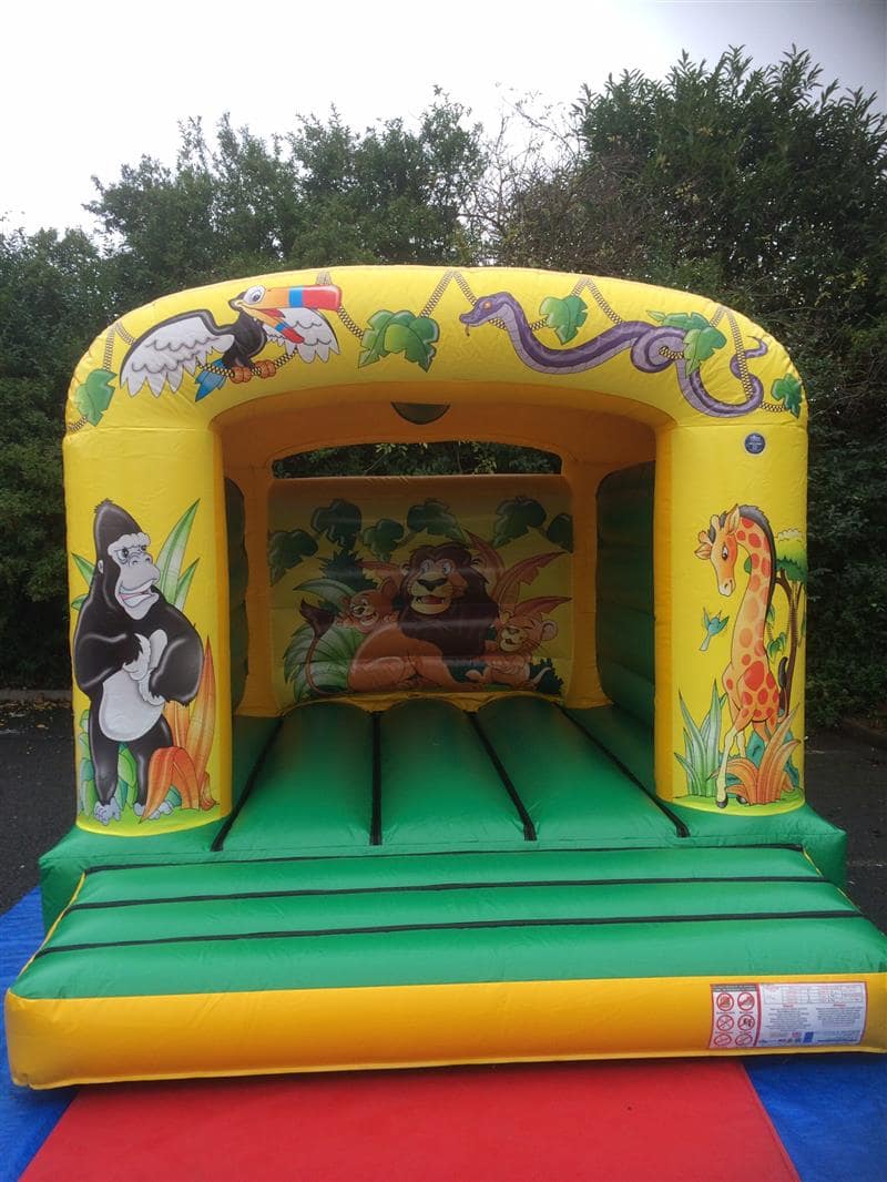 Our 11ft x 13ft Jungle Castle is good for indoor and outdoor use. This is very vibrant and colourful with fantastic artwork of children favourite animals on all walls. Boys and girls love this.